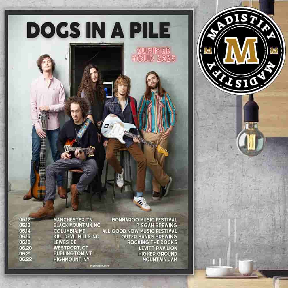 Crafted and brought to life by Madistify, Dogs In A Pile Summer Tour Dates June 2025 Home Decor Poster Canvas stands as a testament to our commitment to excellence.