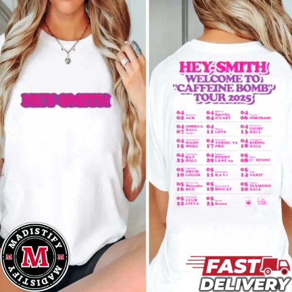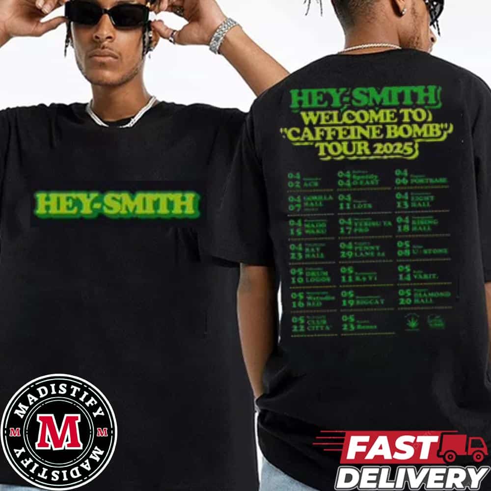 Introducing the Hey Smith Welcome To Caffeine Bomb Tour 2025 Merrch Tour Dates Fan Gifts Essentials Two Sides T-Shirt: Elevate Your Daily Look with Unmatched Comfort, Exceptional Quality, and Infinite Versatility!