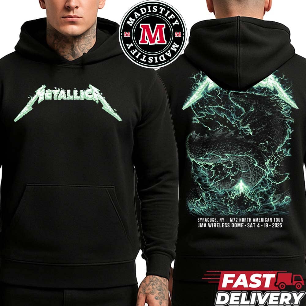 Metallica M72 Syracuse NY Merch Hoodie Art By Collin Estrada At JMA Wireless Dome On April 19th World Tour 2025 Two Sided Print Hoodie T-Shirt