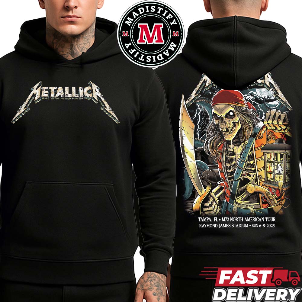Introducing the Metallica M72 Tampa Florida Night 2 Skeleton Pirate At Raymond James Stadium On June 8th 2025 Artwork By Andrew Cremeans Exclusive Two Sided Hoodie T-Shirt: Elevate Your Daily Look with Unmatched Comfort, Exceptional Quality, and Infinite Versatility!